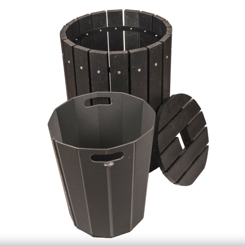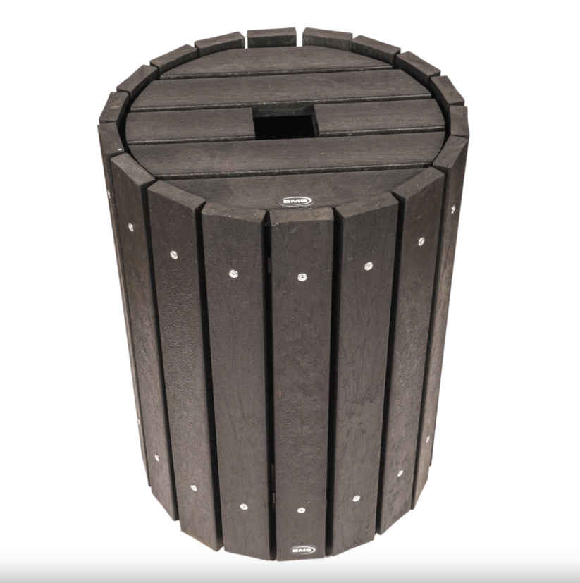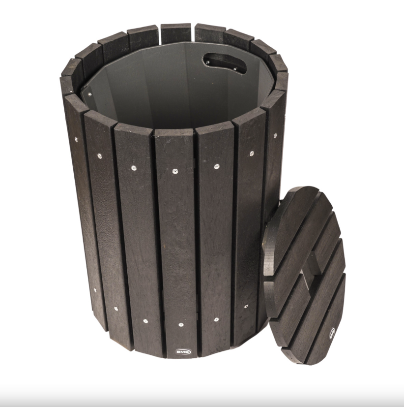 The BMS Deluxe Round Litter Bin is expertly crafted in-house using our EcoPlex wood-effect recycled plastic, offering an attractive and eco-friendly solution for waste management in outdoor settings.