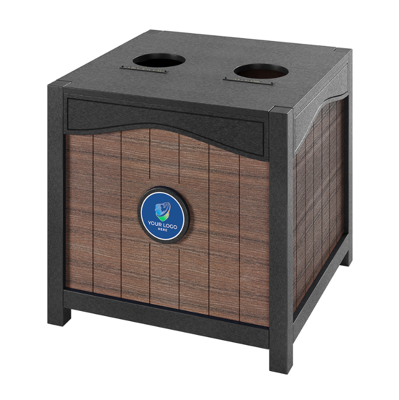 The Luxewood® Recycling Station simplifies waste separation with two clearly marked openings, helping users dispose of waste correctly. Standard labels—General Waste and Recycling—encourage easy participation in sustainable habits. For tailored labeling such as Cans Only or Paper & Cardboard, just select your preferred options in the product configurator above.