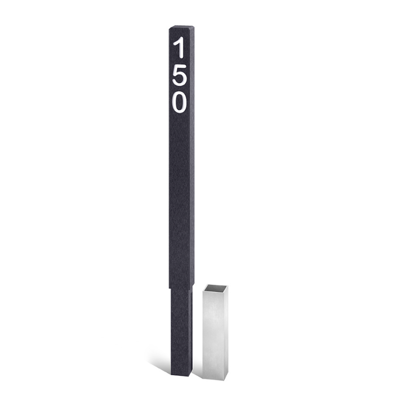 Fairway distance markers stand 600mm above ground and are crafted from durable ProPlex™, available in black, brown, or green. Each marker includes a stainless steel ground socket for secure installation and measures 50mm x 800mm (including the below-ground section). The carved numbers are filled with white resin as standard, with custom color options available upon request. Markers feature a clean, professional finish with an included aluminium ground socket.