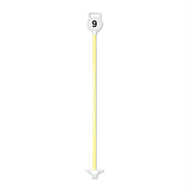 1/2" fiberglass pin fitted with a Gimme Backsaver base for easy ball return. Designed to fit US-size hole cups only and compatible with tube-fitting flags