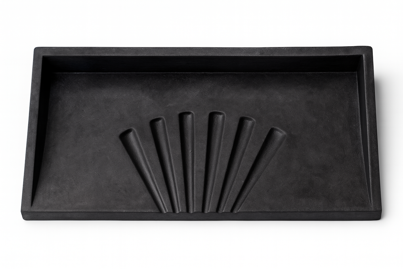 The Lunar Golf Rubber Ball Tray measures 50cm x 30cm and is made from heavy-duty rubber. Designed to hold over 30 golf balls, it features a convenient side groove that allows you to easily roll balls up onto your hitting mat—maximizing your practice time and minimizing time spent retrieving loose balls.